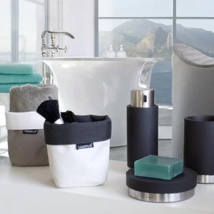 blomus Storage Basket is reversible and washable canvas. Â Perfect for storing toiletries and other items on the countertop or closet shelf. Â Goes perfectly with other ARA blomus bath items.
