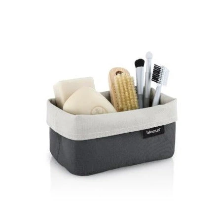 blomus Storage Basket is reversible and washable canvas. Perfect for storing toiletries and other items on the countertop or closet shelf. Goes perfectly with other blomus ARA bath items.