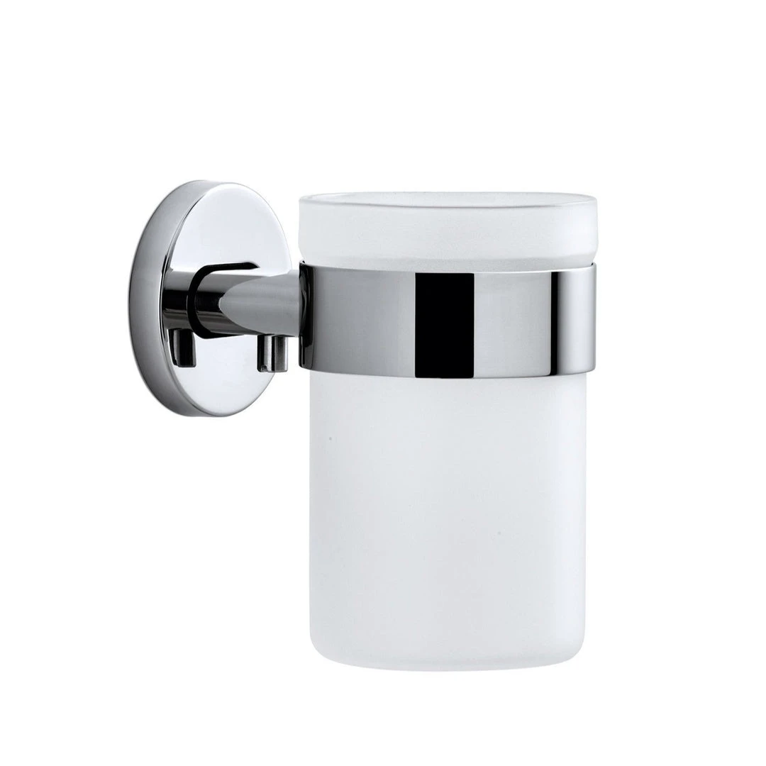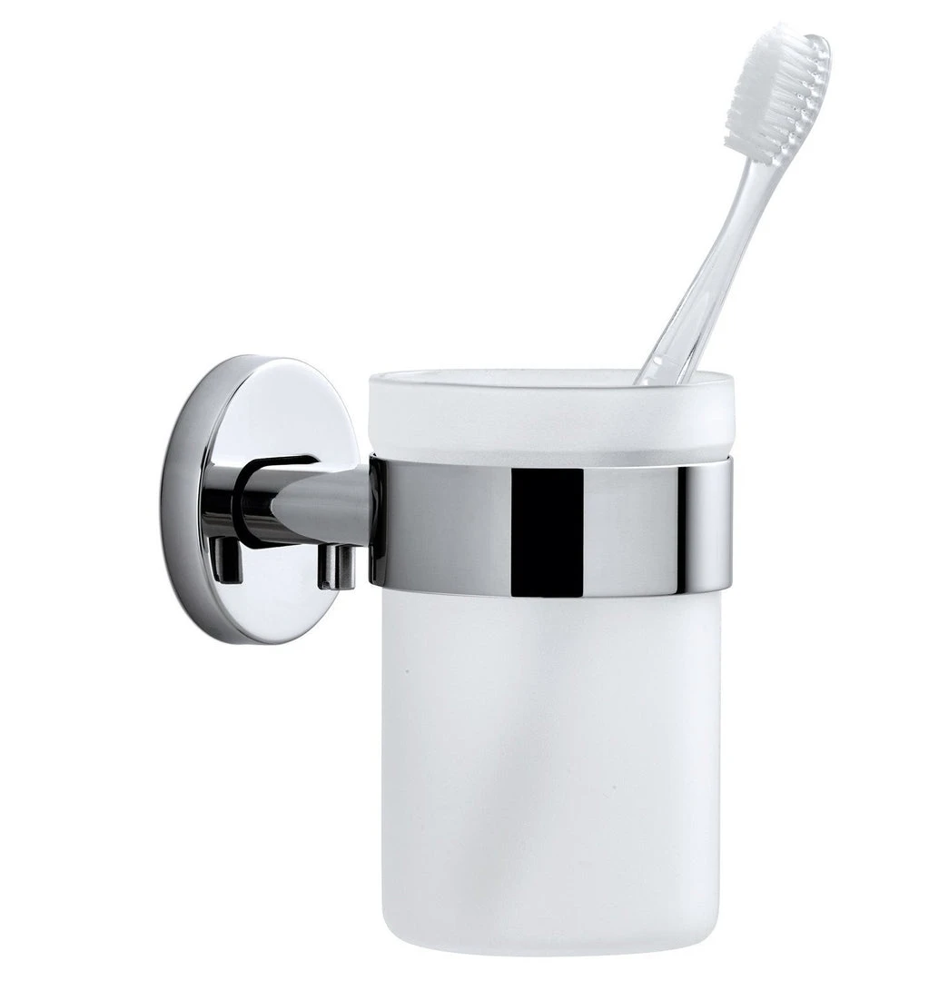 The wall mounted toothbrush holder – frosted glass comes in a elegant polished stainless steel holder. Â The AREOÂ collection allows you to coordinate your entire bathroom with consistency and matching finishes. Â The complete line includes, towel rails, hooks, soap dispensers, shelves, toothbrush holder, hair dryer holder, tissue roll holder, spare tissue holder, toilet brush, and over the door hooks.Â