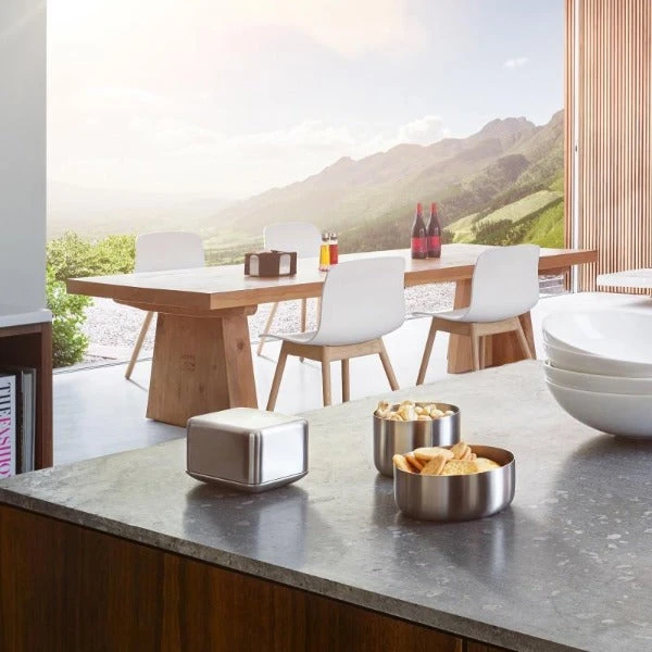 blomus stainless steel butter dish with double-insulated base comes is a classic, clean and simple butter dish suitable for the table. Butter dish includes stainless steel lid.