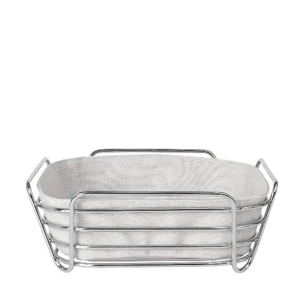 The blomus Wire Serving Basket is both decorative and functional. With removable fabric liners you can use for more than just serving bread. This serving basket made from chromed metal wire with a colored fabric insert is available in two sizes and a choice of several colors.  The fabric insert can be easily removed for washing. Available colors: Moonbeam (cream), Withered Rose, Magnet (charcoal), Taupe.