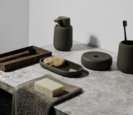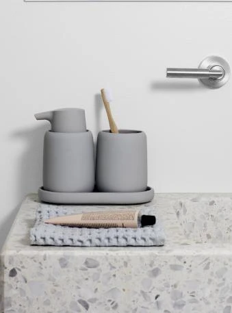 Bathroom Storage Canister – SONO is just one available design in the blomus SONO bath line which features gentle shapes, perfectly rounded edges and a soft surface with an exquisite silk matte finish. The new SONO range includes a soap dispenser, tumbler, tray, storage box, vanity mirror, pedal bin waste basket, squeegee and toilet brush in a variety of colors including: Micro Chip (grey), Moonbeam (beige), Satellite (taupe), Magnet (charcoal), Tarmac (olive), Ashley Blue and Agave Green