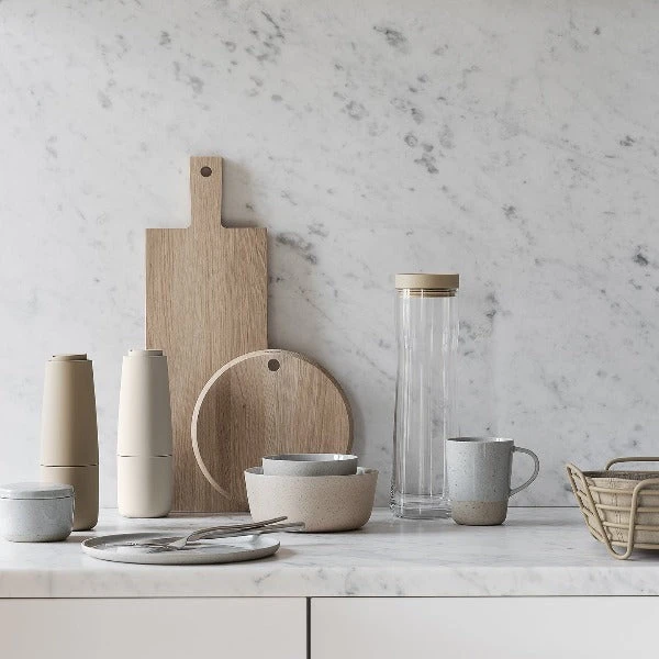 blomus oak cutting boards and trays are made of untreated oak. This makes for a very natural and classic appearance. blomus recommends the wood be treated with oil if the item is used with foods to protect the wood against discoloring and prevent food odors and bacteria from attaching themselves to the surface. Suitable oils for treatment are sunflower oil, olive oil or walnut oil.Â