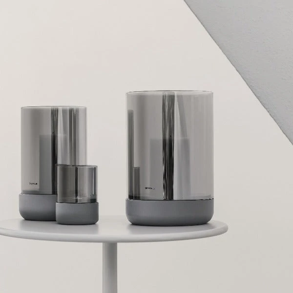 CALMA Hurricane Lamps are beautiful outdoor or indoor ambient accent. The lamp features a dark concrete base and smoke colored glass. Perfect for adding just a bit of light to any space. Partner with the CALMA Hurricane Lamp for Tealight to make a stunning set of three.