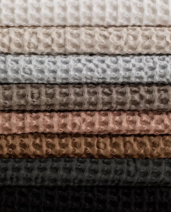 blomus Waffle Bathroom Washcloth 12 x 12, set of 2 is a luxurious European-style fabric cloth that is as beautiful as it is functional. Cotton is extremely absorbent and tear-resistant. Available in a variety of complimentary colors including: Agave Green, Magnet (charcoal), Moonbeam (cream), Satellite (taupe), Micro Chip (grey), Ashley Blue, Black, White, Tan, and Misty Rose.