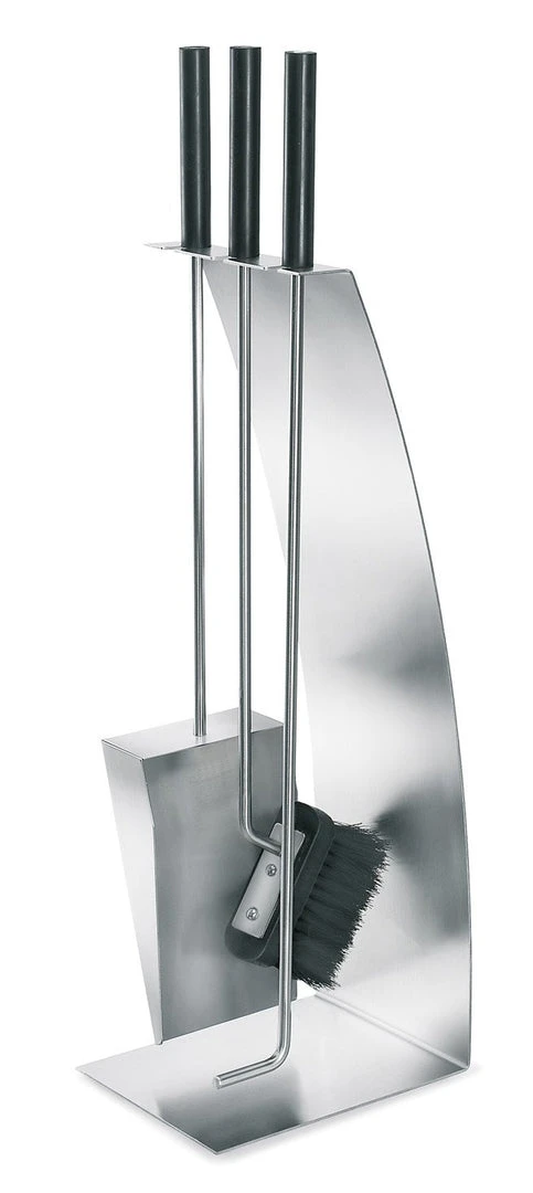 The blomus 4 piece stainless steel fireplace tool set provides a contemporary addition to any fireplace. This fireplace tool set is a basic space-saving style and comes with a shovel, brush and poker. Â With a bow front design the tools are kept out of sight but within easy reach.