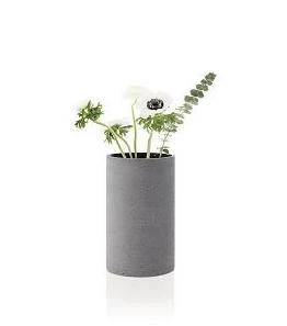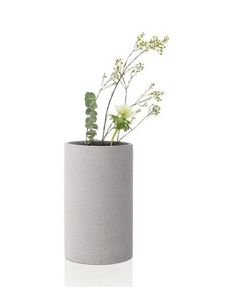 blomus Vase – Small offers minimalist shape and an elegantly reserved design. Available in light or dark grey and large, medium or small sizes. Makes every bouquet look like a work of art. Polystone material lends the appearance of concrete, but is more durable for use as a vase. Inside coating prevents seepage into the polystone. 4-3/4″ diameter x 7-7/8″ height.
