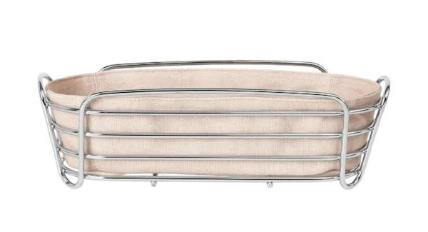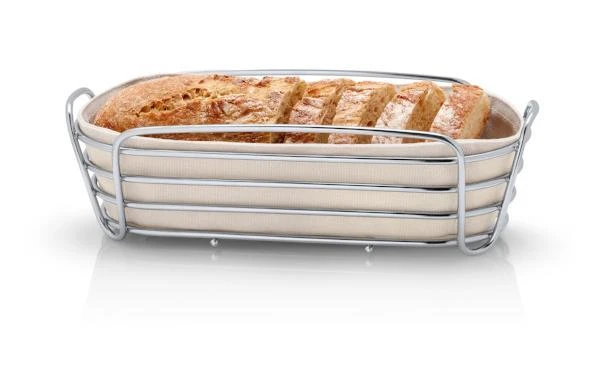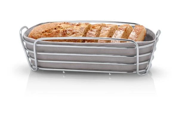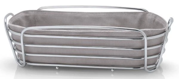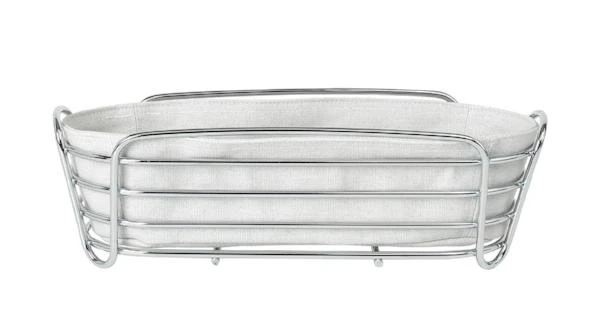 The blomus chrome plated decorative wire serving basket long is both decorative and functional. With removable fabric liners you can use for more than just serving bread.  This serving basket made from chromed metal wire with a cotton fabric insert is available in a variety of colors.  The fabric insert can be easily removed for washing. Â