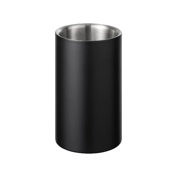 Stainless steel Wine Bottle Cooler with Double Wall Insulation by blomus is double walled to maintain cool wine temperature.  Simple and elegant design withstands the test of time.  Wine stays chilled and ready to enjoy.