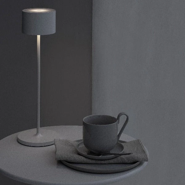 blomus FAROL Mobile Rechargeable LED Lamp is brightly beautiful and can bring your favorite ambient lighting anywhere, anytime – indoor or outdoor. The mobile LED lamp is rechargeable with a USB plug. Briefly touching the top center of the lamp shade turns lamp on/off and controls the three different levels of brightness. Available in 3 colors: Satellite (taupe), White and Warm Grey.