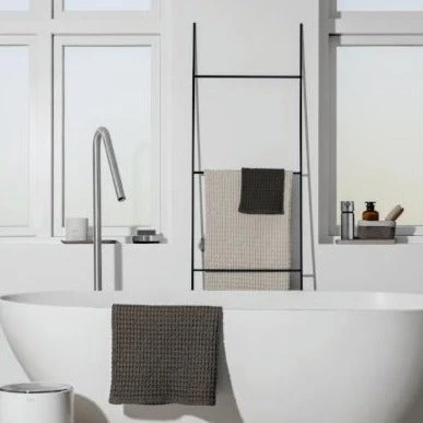 blomus Tall Towel Ladder – Black can be used to hang and dry towels or to display blankets and throws. Towel ladder is designed of beautiful powder coated steel. 65″ height x 17-11/16″ width