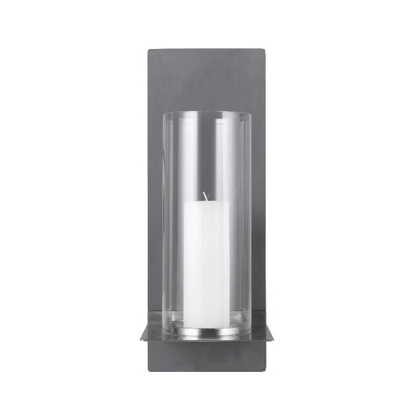 The blomus Wall Candle – Polystone – Small is a beautiful accessory indoors or out. Â The polystone back accent helps to highlight the white candle, which is included with the set. Â Stainless steel shelf securely holds the candle while the large glass hurricane protects the flame from wind outdoors. Combining modern elements like polystone, glass and stainless creates an extremely urban accent.Â