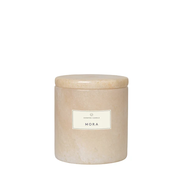 - Mora Vanilla is the leading actor here and to avoid it being too playful, lavender and myrrh blend in. The scent is mystical, takes us to the Orient and caresses our soul. Moonbeam (beige) marble container.