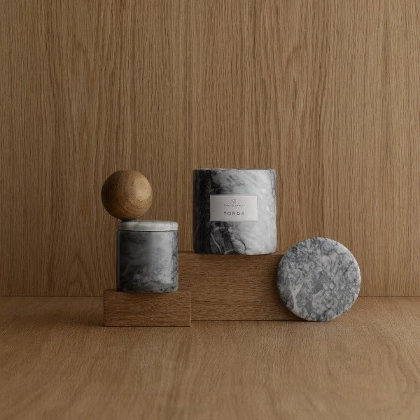 - Tonga is a journey to the South Seas with citrusy freshness meeting herbal pine wood. Balsamic scents immerge into an herbal beauty. Refreshing and exotic, like a tropical rain forest. Sharkskin (grey) marble container.