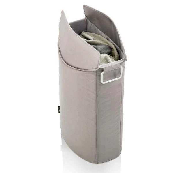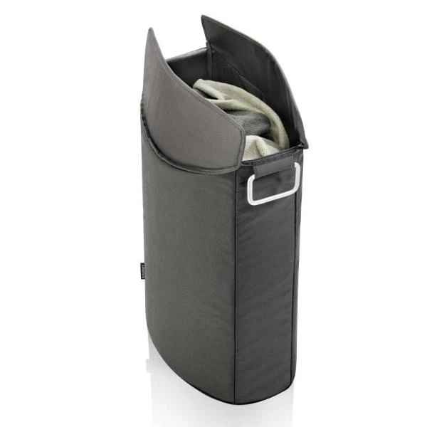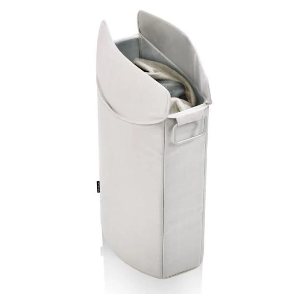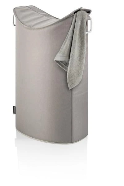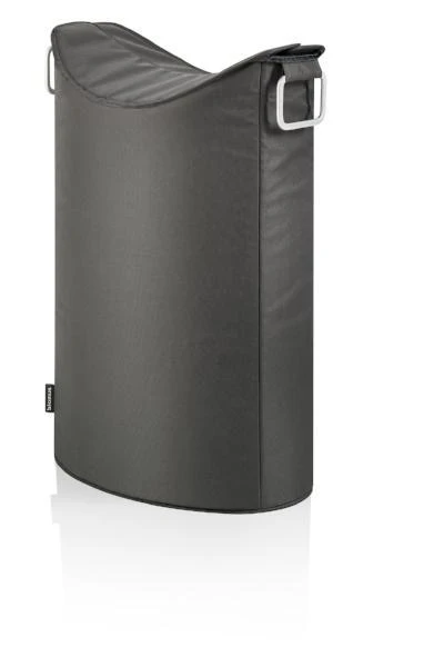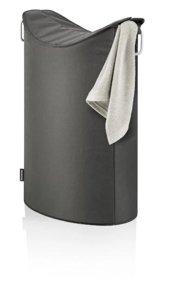 The blomus space-saving and elegantly modern Foldable Laundry Bin is a great alternative to traditional laundry bins.  The slim shape of this modern laundry collector will fit in anywhere. Constructed of durable aluminum and moisture-resistant synthetic fibers, the lean oval shape fits easily into unused corners and niches. Available in a variety of colors including: silver grey, sand, anthracite (charcoal), taupe, and black.
