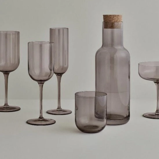 Complete your FUUM crystal sets with white wine glasses, red wine glasses, champagne flutes, champagne saucers, tumblers and water carafe. Mix and match the beautiful colors for a striking ensemble.Â