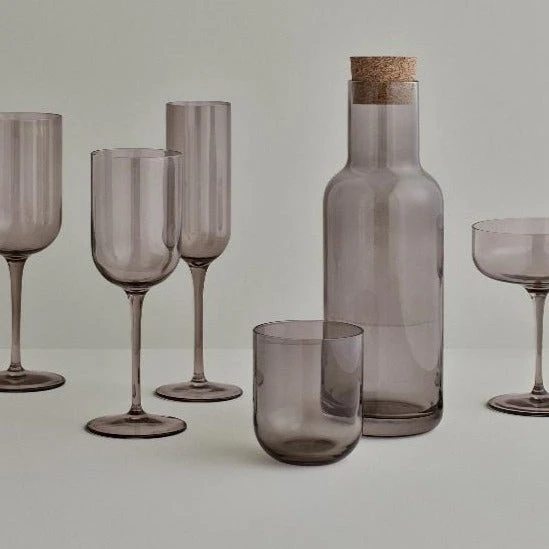 Complete your FUUM crystal sets with white wine glasses, red wine glasses, champagne flutes, champagne saucers, tumblers and water carafe. Mix and match the beautiful colors for a striking ensemble.Â