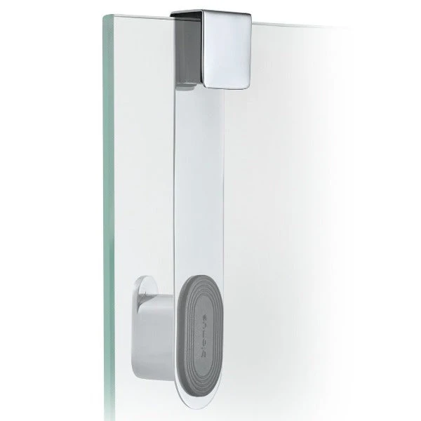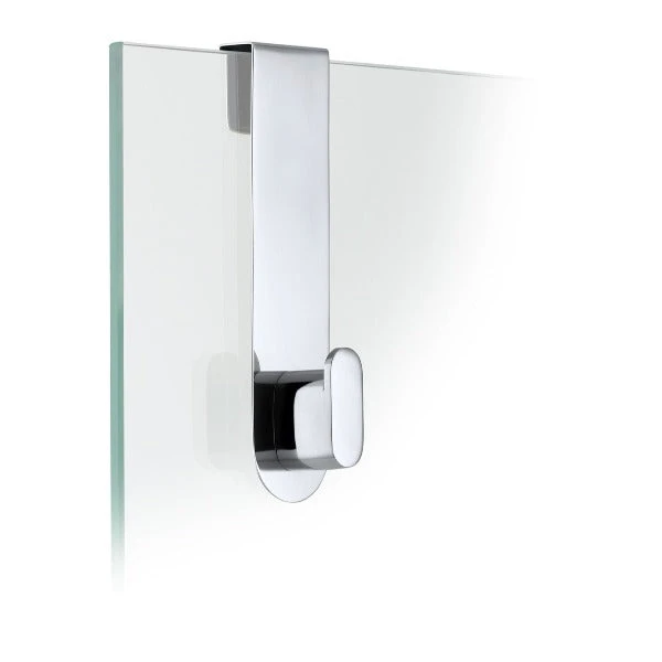The blomus stainless steel glass door shower hook for over the door from the AREO collection is easy to slide on and off of your glass shower wall or door.Â