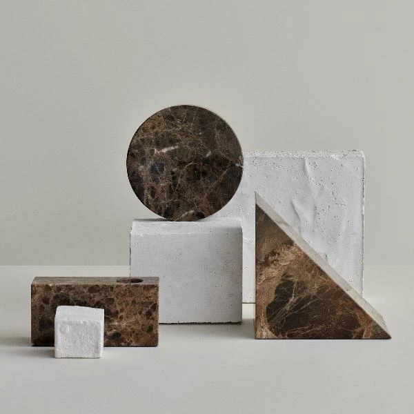 Marvelous Marble – The blomus PESA marble collection is available in both a black marble with stretched light grey veins and a warm brown with a slightly darker pattern. The PESA line includes a storage box, bookends, table mirror, decorative round trays and a rectangular serving tray.Â