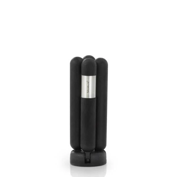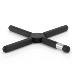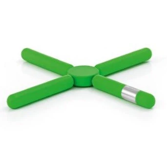 The blomus foldable silicone trivet stores easily, taking up little space. Â Expand to use on the counter to protect from hot dishes. Â This coaster is made of silicone and a practical helper in the kitchen or at the table. Â Unfold it while in use, fold it away for space-saving storage. Available colors include: black, orange and green.