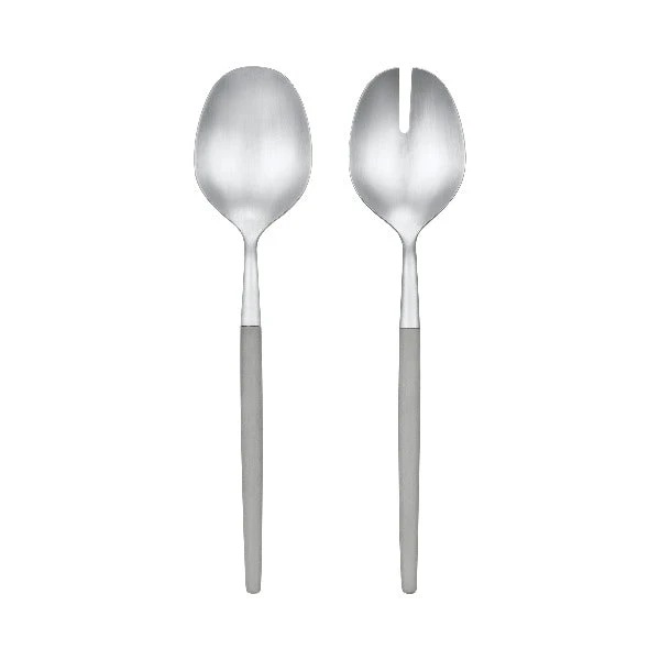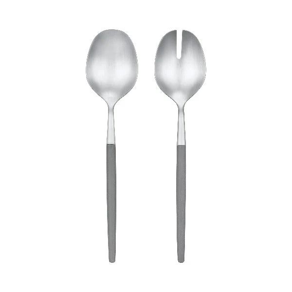 MAXIME Salad Servers, designed by Theresa Rand. MAXIME are created with the humble ambition to please the eye as well as stand the test of daily use. Thanks to the tactile resin handles, the pieces sit comfortably in the hand with a beautiful stainless steel counterweight utensil at the top. The handles color-coordinate with the blomus range and are made of a combination of matt brushed stainless steel and a synthetic resin, POM (polyoxymethylene), which is used to produce precision parts.