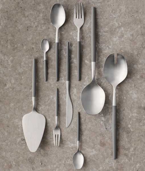 Cleaning instructions: we recommend not to use any caustic or aggressive cleaning agents. When washing by hand, please clean the product in the direction of the brushed surface to avoid the risk of scratches on the surface. Never use steel wool, abrasive sponges or hard brushes as they may scratch the flatware. After cleaning, we recommend to dry the cutlery with a soft cloth in the direction of the finish. However, we advise against polishing in order to preserve the special matt appearance of the surface.