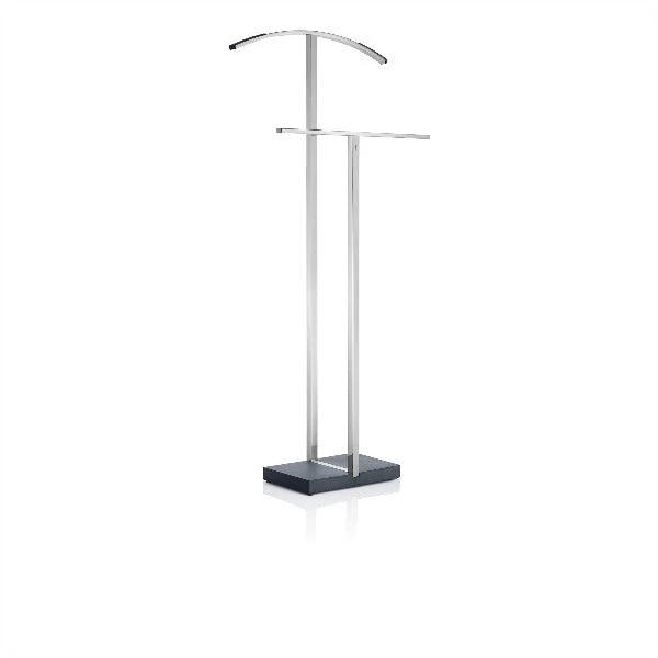 Blomus Menoto Wardrobe Valet – Polished combines a modern design with a traditional piece of furniture.  The upper curved arch is ideal for a jacket or blazer.  The lower rod is 9 1/2” lower providing a place for slacks.Â