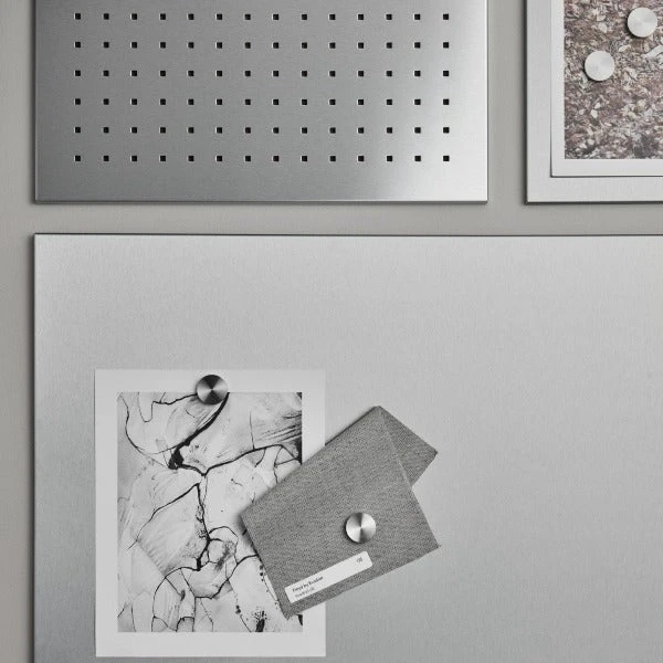 The blomus stainless steel Magnetic Bulletin Boards Perforated fit any environment – office, kitchen, entry way. Boards can be mounted horizontally or vertically. Use any magnet to attached memos, pictures or artwork.