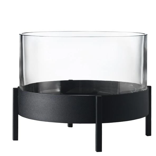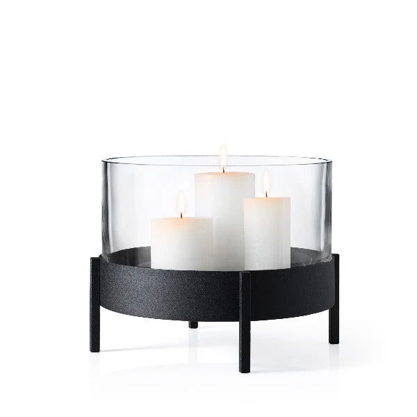 The blomus NERO Pillar Candle Tray adds the unique radiance of candlelight to any space.  Perfect framework…perfect design.  The NERO line features black matte powder-coated steel frames combined with clear glass for a comforting material mix. Candles not included.  Hurricane/tray can also be filled with sand, shells flowers or other natural elements for a beautiful design piece.  The NERO range features designs which can be mixed and matched to illuminate your space. Â