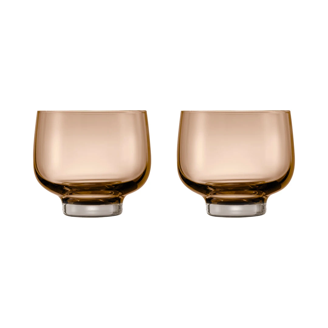 The beautiful blomus FLOW Glasses – 7 Ounce – Set of 2 are perfect for cold drinks. The sturdy base and gracefully rounded shape creates a perfect filigree silhouette. The beautiful smoky color or coffee color is different in each beautiful design. Available also in a 14 oz glass and matching carafe. An artisan glassblower crafted each individual glass, so exact size, color, and potential bubbles or flowlines are unique. Â