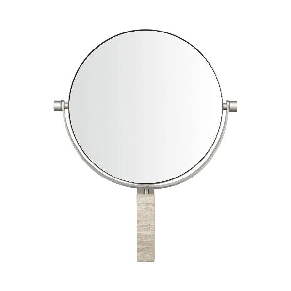 LAMURA Marble Wall-Mounted Vanity Mirror, designed to be beautiful with a practical purpose. German designer Nina Thöming chose the material of grand architecture and historic sculptures to cast irony to these humble objects we use every day. The soft beige-colored marble features discreet light brown, white and grey veins which make the material come to life and coordinate with almost any décor. The brushed stainless steel rim of the mirror give the design an industrial flare. Discover the entire line of LAMURE bath accessories, or match them with accessories from the blomus SONO or MODO lines.Â