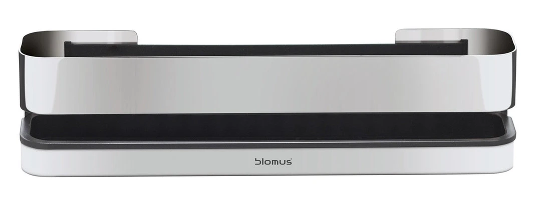 NEXIO Modern Stainless Steel Shower Shelf – Large – Polished by blomus provides storage and organization to the bath or shower. Keeps any shower tidy and has space for all necessary items. Â Stainless steel basket contains a plastic tray that can be removed and cleaned. Â Also features a wide elastic band inside the basket that holds smaller items in place, such as an upturned shampoo bottle or razor.Â