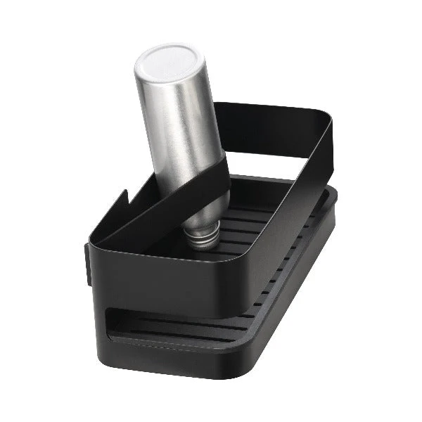 NEXIO Modern Stainless Steel Shower Shelf – Large by blomus provides storage and organization to the bath or shower. Keeps any shower tidy and has space for all necessary items. Stainless steel basket contains a plastic tray that can be removed and cleaned. Also features a wide elastic band inside the basket that holds smaller items in place, such as an upturned shampoo bottle or razor.