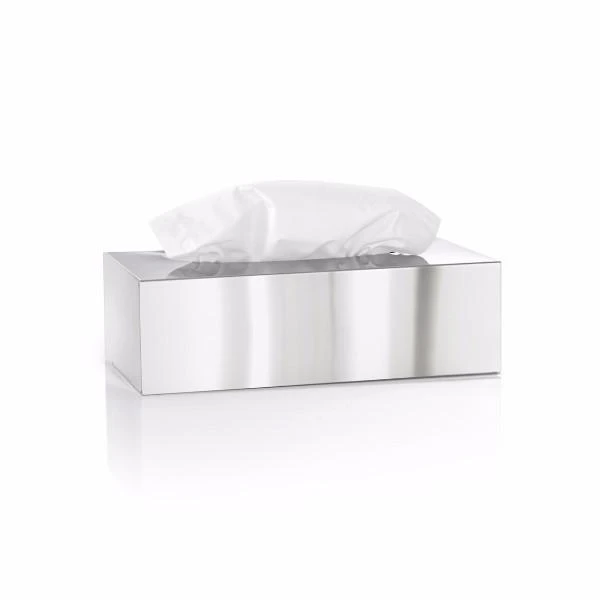 The blomus stainless steel tissue holder – polished is designed to hold tissues only (not tissue box). Simply remove tissues from store box and place inside.Â