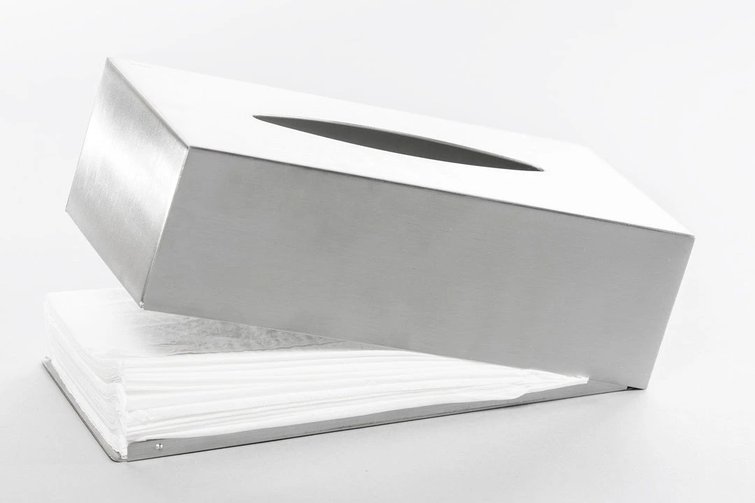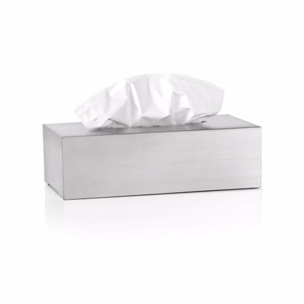 The blomus stainless steel tissue holder is designed to hold tissues only (not tissue box). Â Simply remove tissues from store box and place inside.