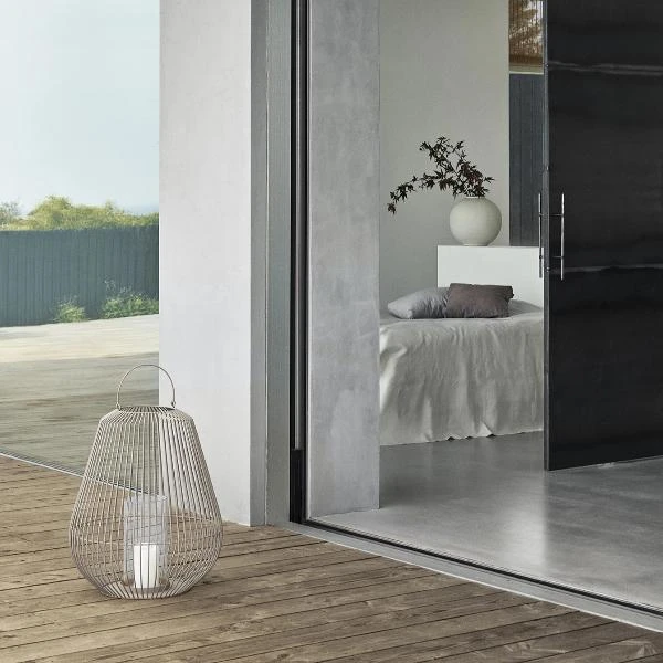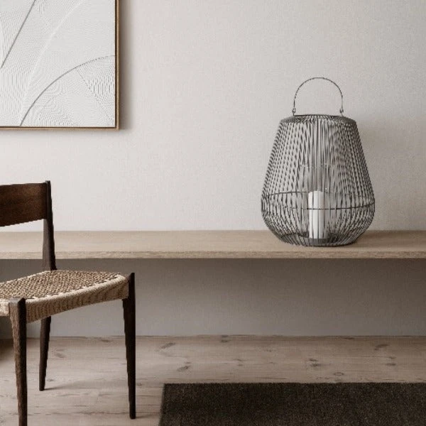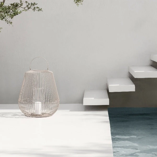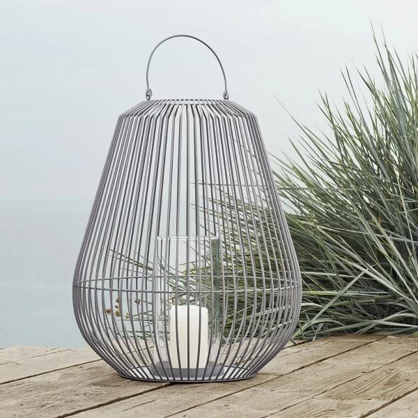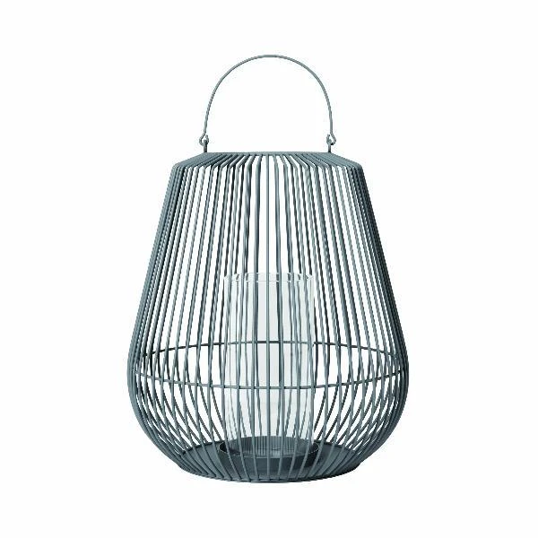 blomus Decorative Lantern 18 x 21 is a wow design piece for any space. Outer is designed of powder coated steel. The center focal point contains a clear glass hurricane for candle, shells, stones, flowers or other decorative items. This lantern is a stunning piece and makes an amazing statement when combined with the other two sizes.Â