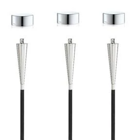 This set combines (3) Stainless Steel Outdoor Garden Torches – Cone Polished 65092Â with (3) Caps for Torches Polished 65417Â to keep the torch wick dry and clean. Â Buy the set of 3 torches, caps included free –Â Save by buying the set (rather than buying items separately.)