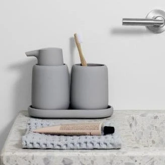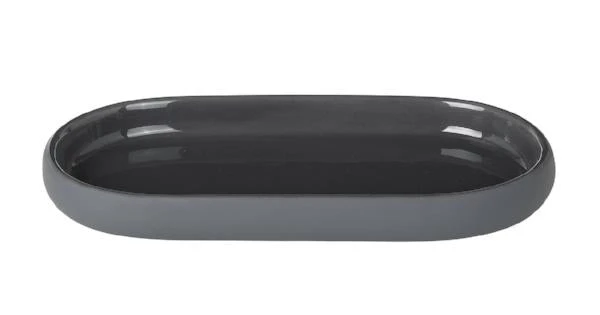 Oval Tray – SONO is just one available design in the blomus SONO bath line which features gentle shapes and perfectly rounded edges. The new SONO range includes a soap dispenser, soap dish, tumbler, tray, storage box, vanity mirror, pedal bin waste basket, squeegee and toilet brush in a variety of colors including: Micro Chip (grey), White, Black, Moonbeam (beige), Satellite (taupe), Magnet (charcoal), Ashley Blue, Tan