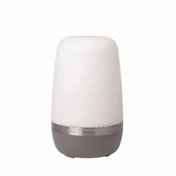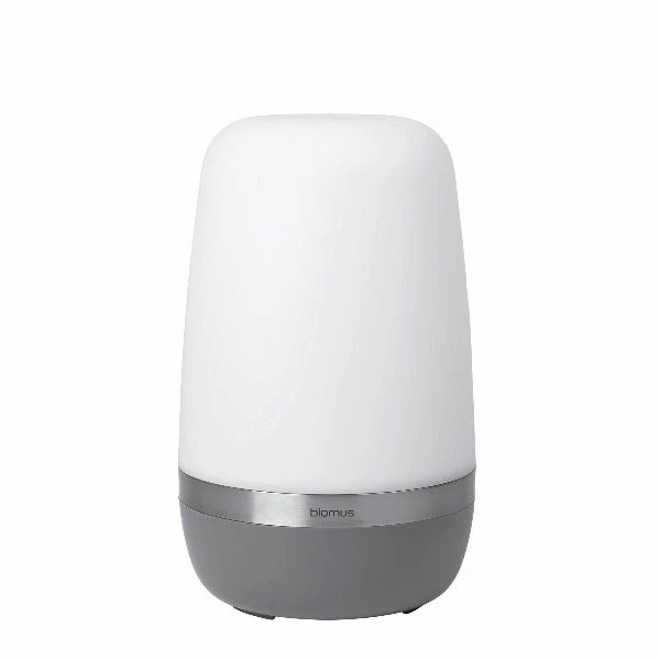 blomus SPIRIT Outdoor LED Lamp sets the mood – wherever, whenever. This popular LED outdoor light can be used anywhere, indoor or outdoor. The Light is simple to recharge with the included USB cable. Features 2 brightness levels. Small and large lamps and will run for 6-12 hours depending on brightness used. X-Large lamp will run for 8-16 hours. The satin-finished plastic shade casts a gentle, shimmering light. The shade is complimented by a matte stainless ring and a warm grey colored base. Available in two sizes.Â