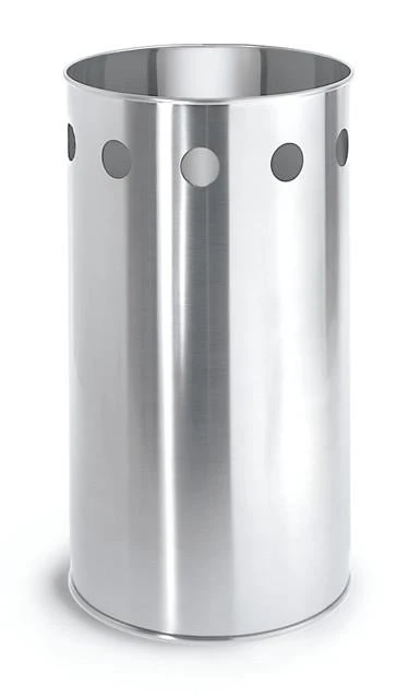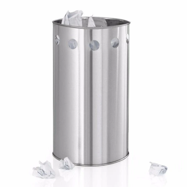 The blomus stainless steel wastepaper basket 3.5 gallon with circle design element is convenient for home or office. Â Bottom plastic tray insert to protect from potential leaking of liquids. Â 3.5 gallon.