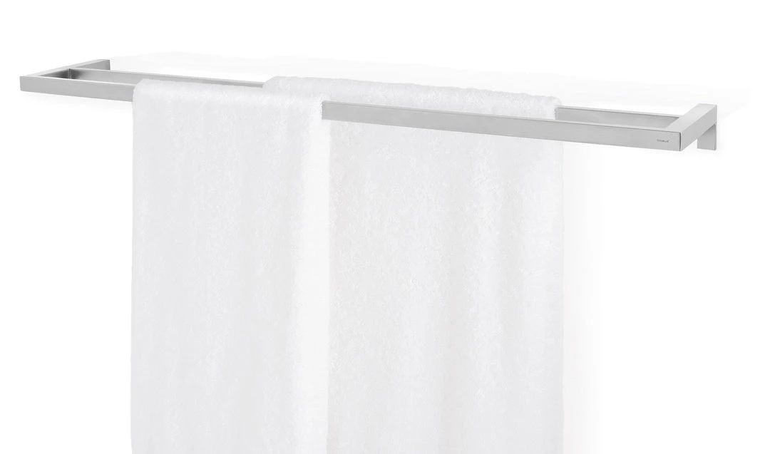 The blomus stainless steel Towel Rail Double – 33 Inches – Menoto provides dual storage while requiring less space. This twin towel bar has the advantage of hanging two towels neatly and efficiently.