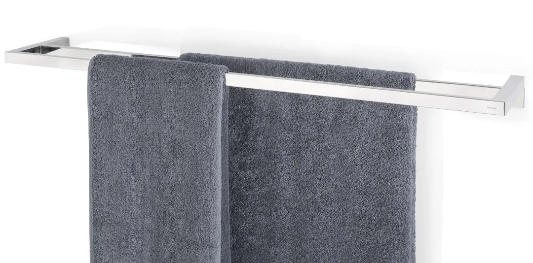 The blomus stainless steel Towel Rail Double – polished – MENOTO provides dual storage while requiring less space. This twin towel bar has the advantage of hanging two towels neatly and efficiently.