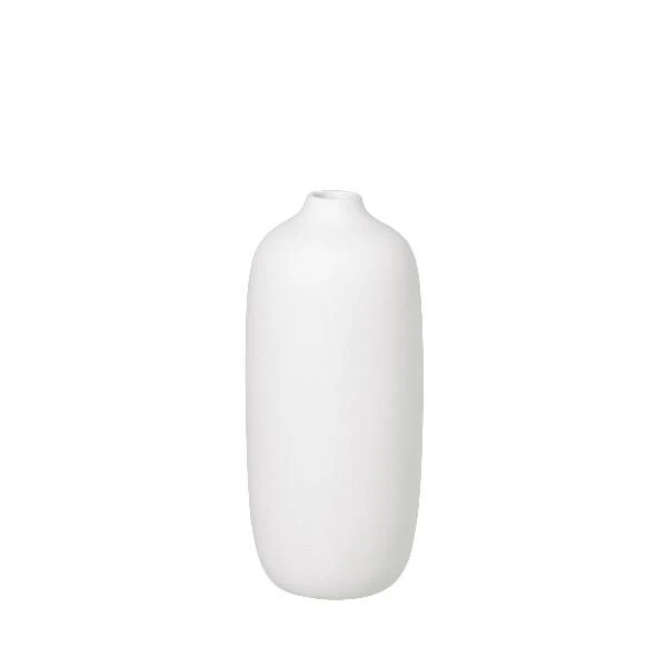 The surfaces of the CEOLA series are made of resistant ceramics, glazed but left a bit course. Small bumps, slight color variations and visible lines are the result of the production process and add to the natural look as well as the unique character of every single vase. Gather a few of your favorite flowers – or simply collect wild twigs that add a rustic, natural feel to your interior décor.