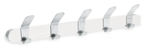 Coat racks are indispensable in every apartment or house. Â Our 5 Hook Coat Rack fits any living environment. Â The interesting contrast of black or white and stainless steel most certainly catches the eye.Â