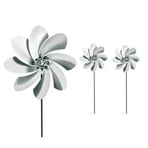 The Pinwheel – Curve Petals – 1 Large + 2 Small Set is a nice accessory for garden, balcony or terrace. The curved petals will turn even in a gentle breeze and add whimsy to any landscaped area. Â Minimal assembly is required by placing the pinwheel on the metal ground stake which is included. Â Large = 3 1/2” x 11 7/8” Wheel Diameter x 51 1/4”Height. Small = 3 1/2″ x 7 7/8″ Wheel Diameter x 27 5/8″ Height Save 20% by buying the set over buying items individually.