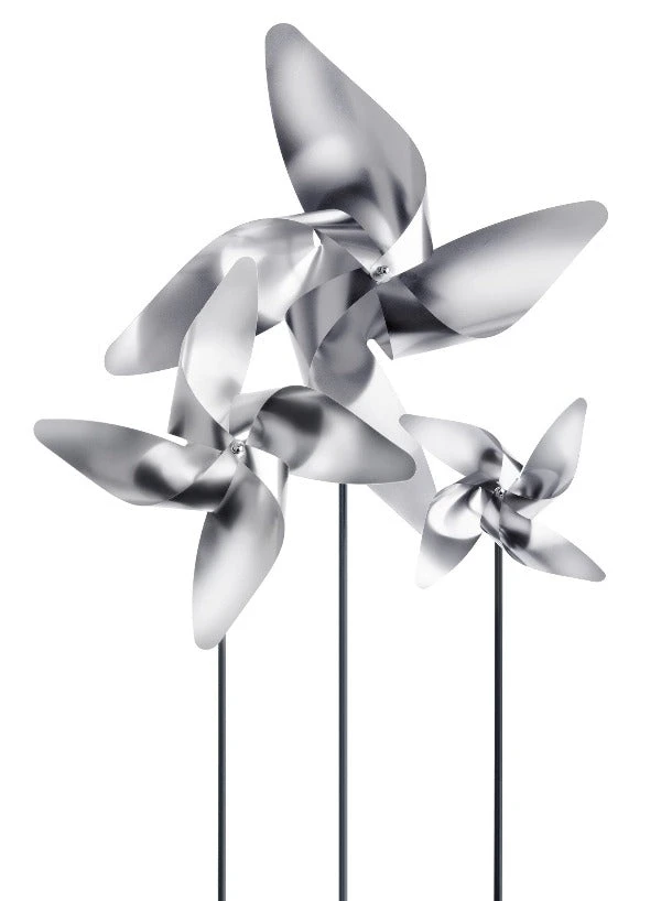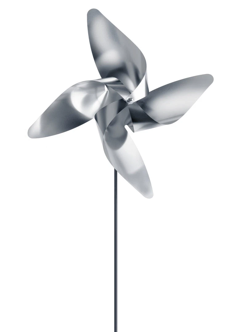 The blomus stainless steel Pinwheel – Traditional 4 Petals – Large provides a whimsical garden accessory for the yard, balcony or terrace. Â The traditional petals will turn even in a gentle breeze. Â Minimal assembly is required by placing the pinwheel on the metal ground stake which is included. Â 15 3/8” x 4 7/8” x 52 3/4”.