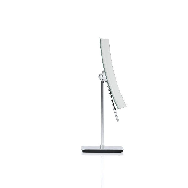 Vista cosmetic mirror with 5x magnification by blomus is a great accessory to the bathroom or vanity. Â Ball hinge in the rear allows you to adjust mirror to almost any angle 360 degrees. Â Mirror can be removed from base and is magnetic on the back to stick to any metal surface.