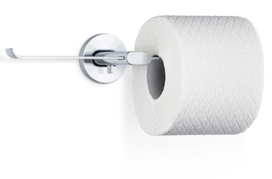 The new blomus AREO bath line allows you to fully accessorize your bathroom.  The stainless steel Wall Mounted Toilet Paper Holder – 2 Roll is also available in a polished finish.  So easy to change the roll, even a child can do it…if they will.Â