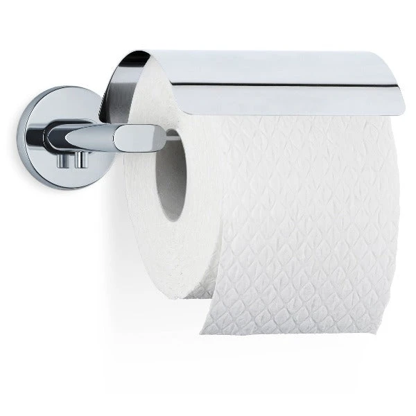 The blomus stainless steel wall mounted toilet paper holder is a beautiful addition to the AREO bath collection.  The super-modern holder features a decorative stainless steel plate that also keeps tissue clean and assists in tear-off.Â